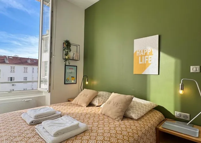 O apartamento Cosy Cocoon Place Massena Nice oferece quartos com vista para a cidade e localização a 19 minutos a pé do Parque Colina do Castelo.